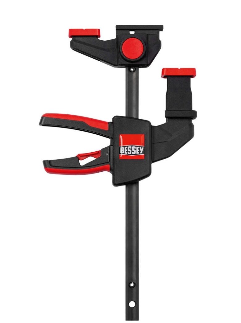 Ergonomisch geformter 2-Komponenten-Kunststoffgriff mit Pumphebel hinter der Schiene